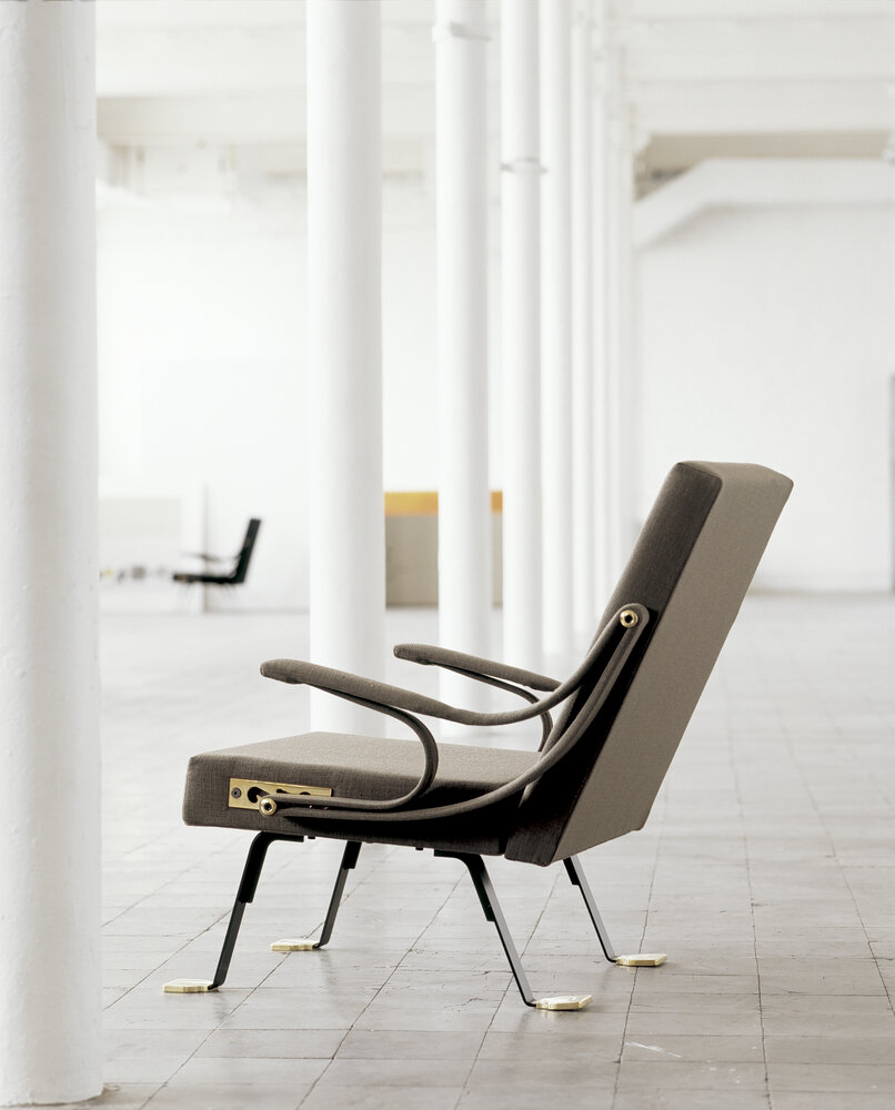 Digamma is een comfortabele chaise longue met een metalen structuur en een rationeel lichaam. Het bestaat uit twee geometrische volumes en is verkrijgbaar in verschillende textielopties. Aan beide zijden is het ligmechanisme met drie standen duidelijk zichtbaar. En de beroemde gouden eendenpoten doordrenken dit ontwerp met ironie.