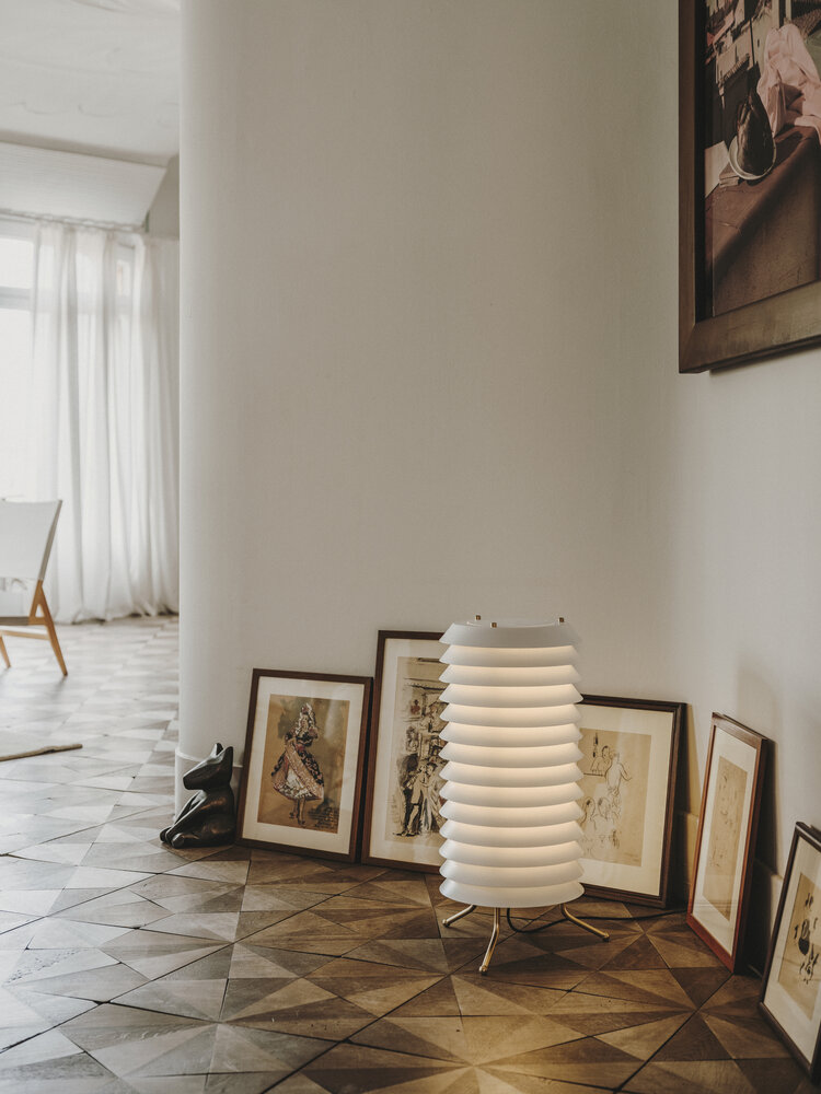 | Kleur | Metallic lampshade finished in matte white. Brass feet finished in matte. |