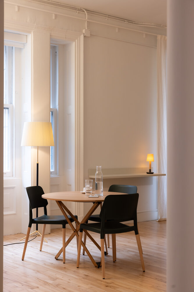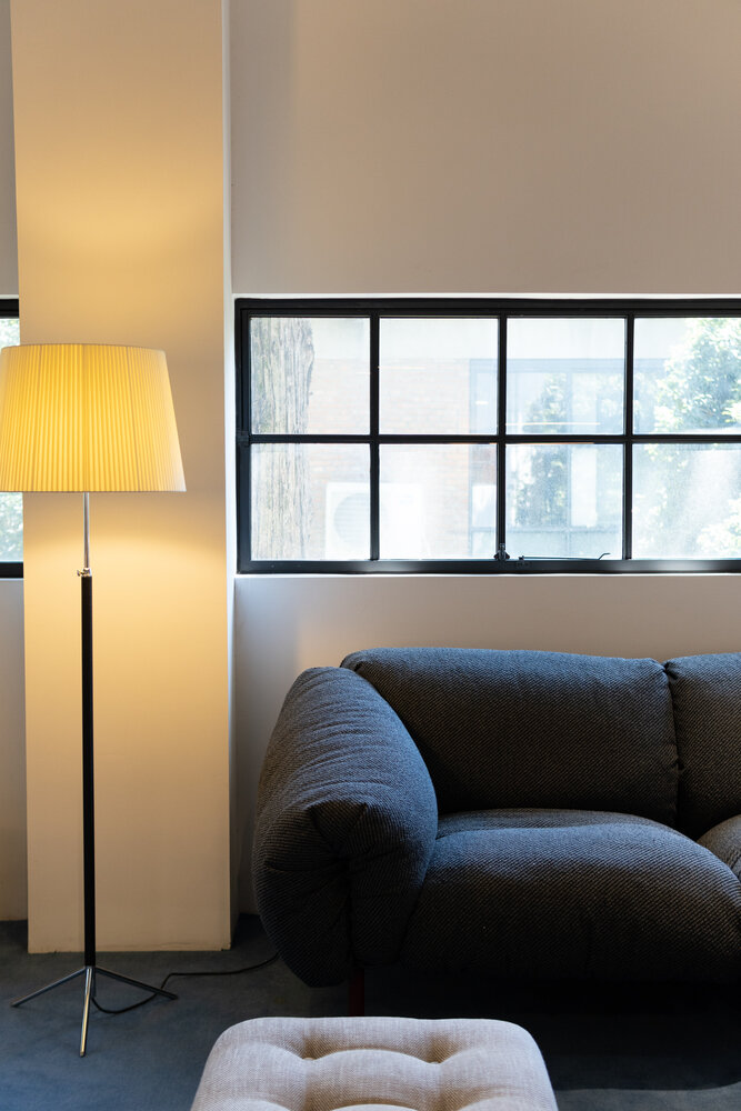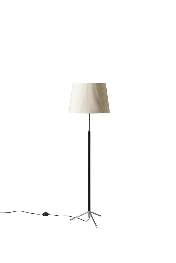 Deze slanke synthese van traditionele lampen is een sprankje tijdloze elegantie gecreëerd in een context van de avant-garde. De combinatie van materialen met zijn symmetrische, met leer omwikkelde centrale schacht van chroom, de keuze uit drie kleurmaterialen en acht kleuropties maken het tot een toonbeeld van industrieel vakmanschap.