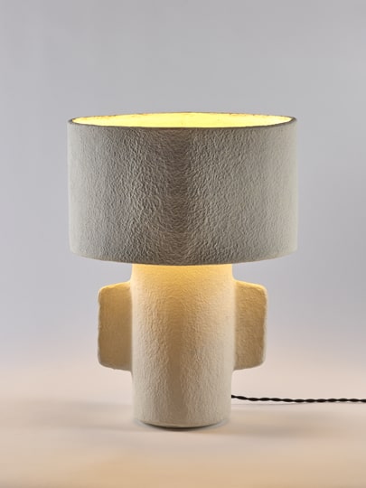 Huisdesigner Marie Michielssen vult haar succesvolle Earth-collectie aan met bloempotten, vazen en een lamp in papier maché. Voor outdoor gebruik komen daar ook nog plantenpotten in terracotta bij. Allemaal in primitief ogende vormen, met een textuur die het aardse karakter van de collectie accentueert.
