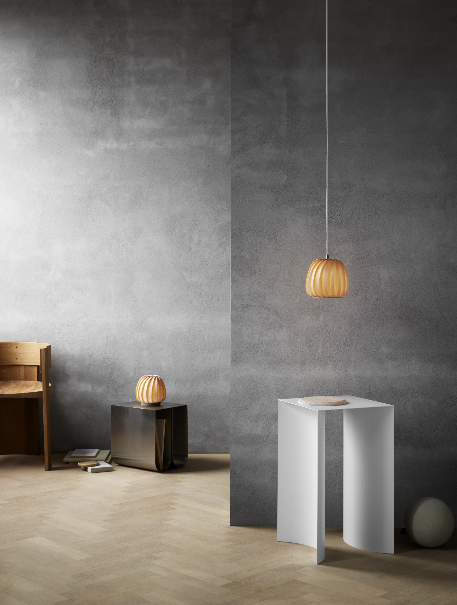 ST906 is a timeless lamp that is versatile due to its size. The shape has a classic and minimalist look, with a soft profile. ST906 is made in two materials: coated paper and birch veneer. The materials have different expressions and degrees of illumination. Coated paper provides good and general lighting, in a pleasant white tone. While the birch veneer gives a warm and cozy light. ST906 is available as a pendant lamp and as a table lamp.