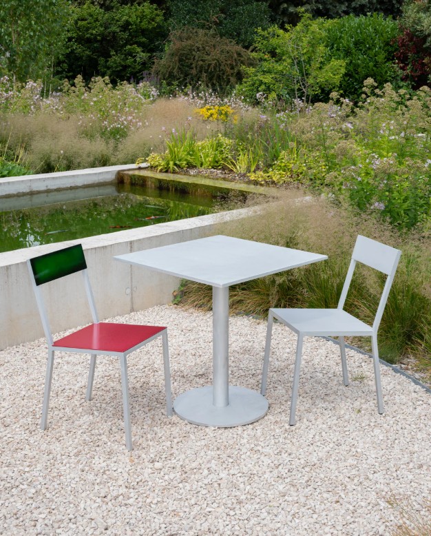 Voor de Square Table ontwierp Muller Van Severen een sober en basic object dat uitblinkt in details en afwerking. Muller Van Severen ontwierp een basic object dat uitblinkt in details en afwerking. Er zijn geen zichtbare sporen van laswerk en het tafelblad bestaat uit massief aluminium, wat een robuustheid toevoegt aan dit meubel. In contrast met de minimalistische vorm is het tafelblad gelakt met een gehamerde coating. Dat is een oude techniek die vooral voor industriële gereedschappen en machines wordt gebruikt.