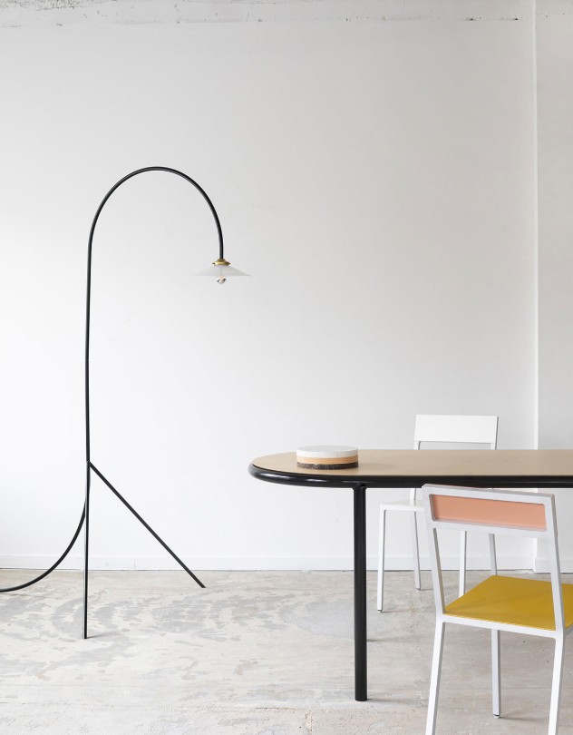 De staande lamp is een voortzetting van de hanglamp die werd gepresenteerd tijdens hun allereerste tentoonstelling, die werd gehouden bij Valerie Traan, de galerie van art director Veerle Wenes van Valerie Objects. Deze lampen komen voort uit hetzelfde concept, namelijk de materialisatie van eenvoudige en kleurrijke tekeningen in de ruimte van het interieur. Net als de hanglamp bestaat deze staande lamp uit vrijwel niets meer dan één vloeiende, gebogen lijn met aan het uiteinde een gloeilamp. Omdat dit object op de grond moet staan, zijn er twee kleine lijntjes toegevoegd, die de pootjes van de lamp worden. Aan de ene kant trekt het basisontwerp niet al te veel aandacht, aan de andere kant doet het speelse karakter de ogen tintelen. Om deze vrolijke uitstraling te benadrukken, wordt de lamp aangeboden in vrolijke kleuren zoals groen, blauw en zelfs curry. Er zijn ook ingetogen versies in zwart, grijs en messing verkrijgbaar.