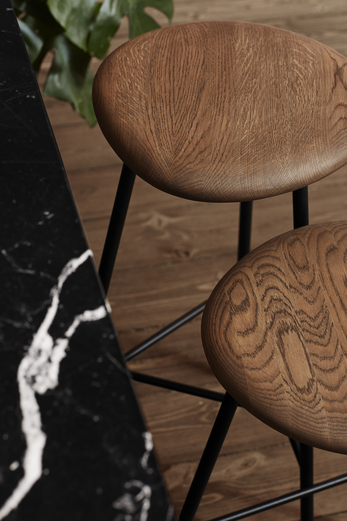 Lichte krukken en barkrukken met organisch gevormde zittingen van massief hout en nauwkeurigheid tot in de kleinste details. Met zijn uitgebreide vorm en heerlijke afwerking nodigt Pebble uit om de stoel aan te raken en getuigt van een trotse Scandinavische traditie van vakmanschap van de hoogste kwaliteit. Pebble is verkrijgbaar in drie verschillende hoogtes, zodat ze allebei inzetbaar zijn voor een snelle kop koffie aan de keukentafel, drankjes en snacks aan de bar en extra zitgelegenheid aan de eettafel. Het ontwerp van de kruk en barkruk is geïnspireerd op stenen gevonden op het strand, die na eeuwen van blootstelling aan de natuur zacht en rond zijn geslepen. Op dezelfde manier zijn de stoelen op de Pebble enigszins asymmetrisch met een organische vorm die de schoonheid van het hout verzilvert. Kies uit drie verschillende hoogtes, metalen frames in verschillende klassieke kleuren en exclusieve houtsoorten met een verfijnde afwerking.